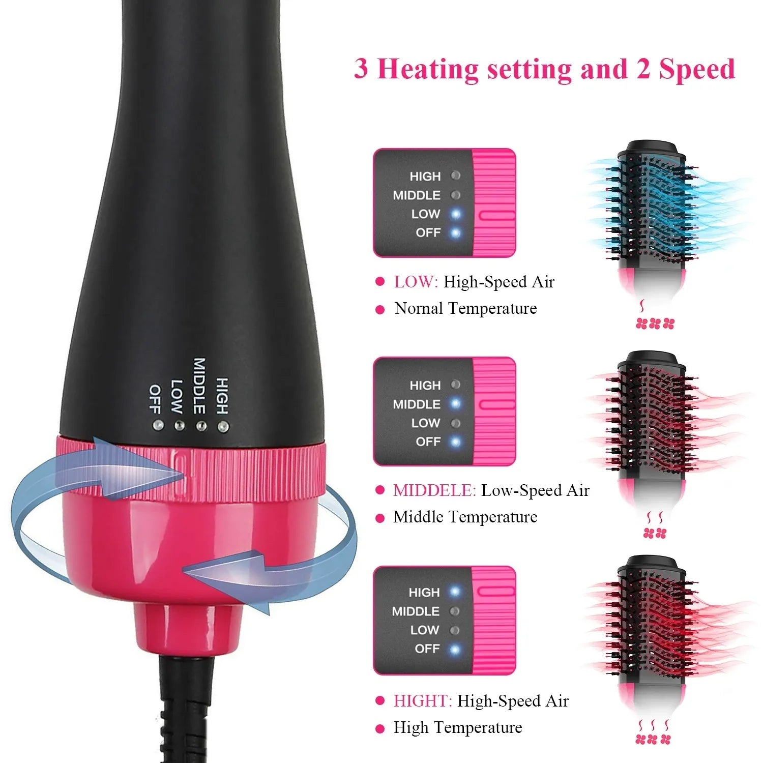 - Custom Heat & Speed Settings – Features three adjustable modes (Low, Medium, High) to suit all hair types and styling needs.